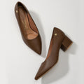 - Napa leather-look upper- Cappuccino hue- Pointy toe- 5 cm block heel - Comfortable inner sole with extra padding- Memory foam-lined interior