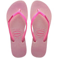 A Havaianas Slim Glitter Iridescent traz uma sola brilhante e tiras bem glitterizadas. O logo metálico também dá sua dose de brilho.