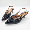 Vizzano 1122-885 Kitten Heel Pointy Toe Slingback Pump in Black Patent